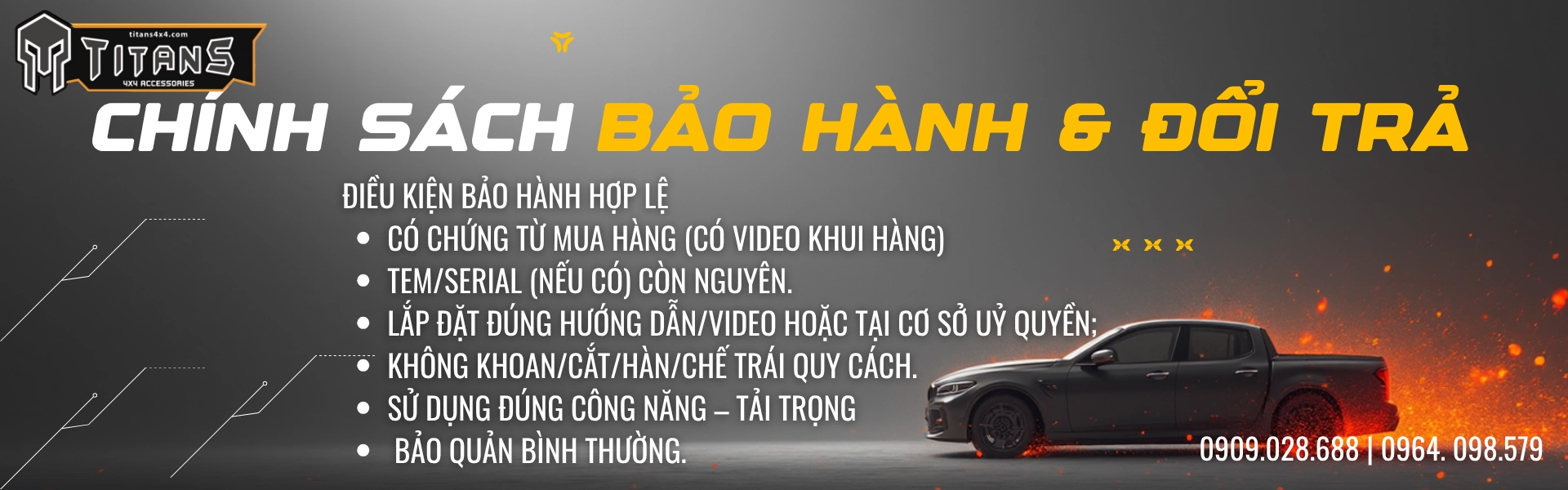 Tai nạn/va chạm mạnh, quá tải, off-road cực hạn, kéo vượt tải; tự ý can thiệp kết cấu/đấu nối; ăn mòn do hoá chất/muối biển; hao mòn/thẩm mỹ tự nhiên (trầy xước, phai màu…), lắp sai quy cách.